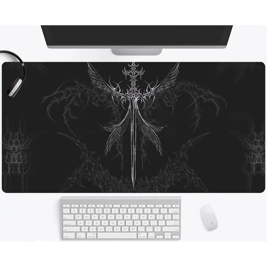 Cybersigilism Angel Sword Gaming Mouse Pad Keyboard Mat Large Desk Mat Dark Fantasy Art Non-Slip Home Computer Accessories
