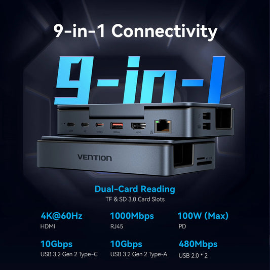 Vention USB C Docking Station for Steam Deck HDMI 4K60Hz USB 3.2 10Gbps RJ45 SD&TF Dock for Switch Asus ROG LEGION Go iPhone HUB