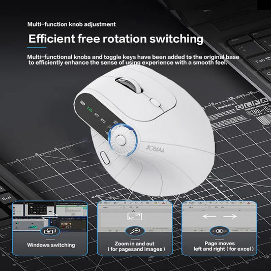 Wireless Vertical Mouse Rechargeable Optical Mice With Function Adjustment Knob Ergonomic Mouse for Multi-Purpose