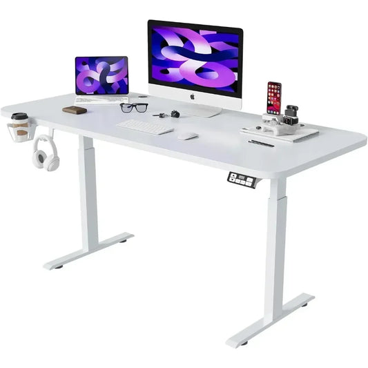 Adjustable Desk Electric Standing Desk Sit Stand up Desk Height Adjustable Home Office Workstation White 63x24inch