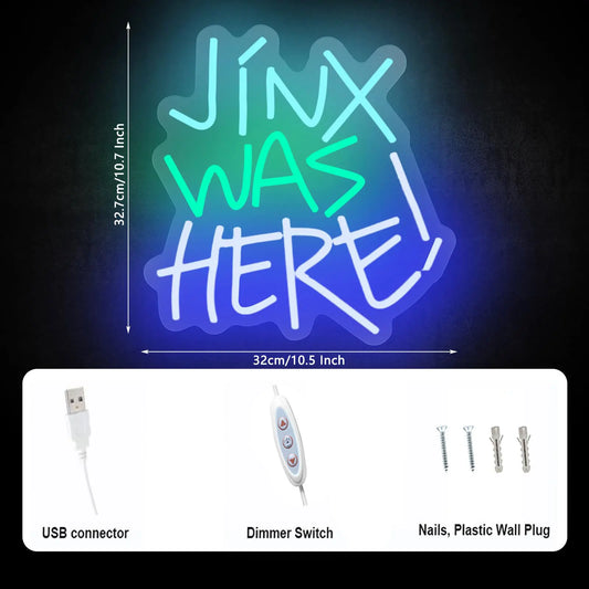Jinx Was Here Neon Sign - Dimmable LED Wall Decor for Gamers & Parties