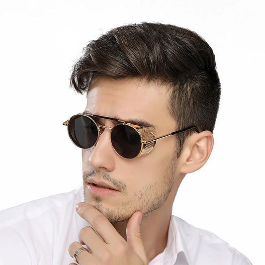 VIVIBEE Steampunk Round Sunglasses – Gothic Punk Retro Metal Goggles