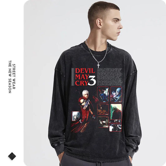 Devil May Cry Long Sleeve Shirt | Oversized Dante & Vergil Tee – Harajuku Style