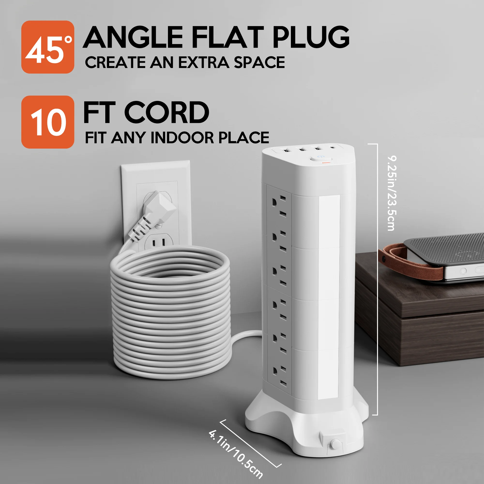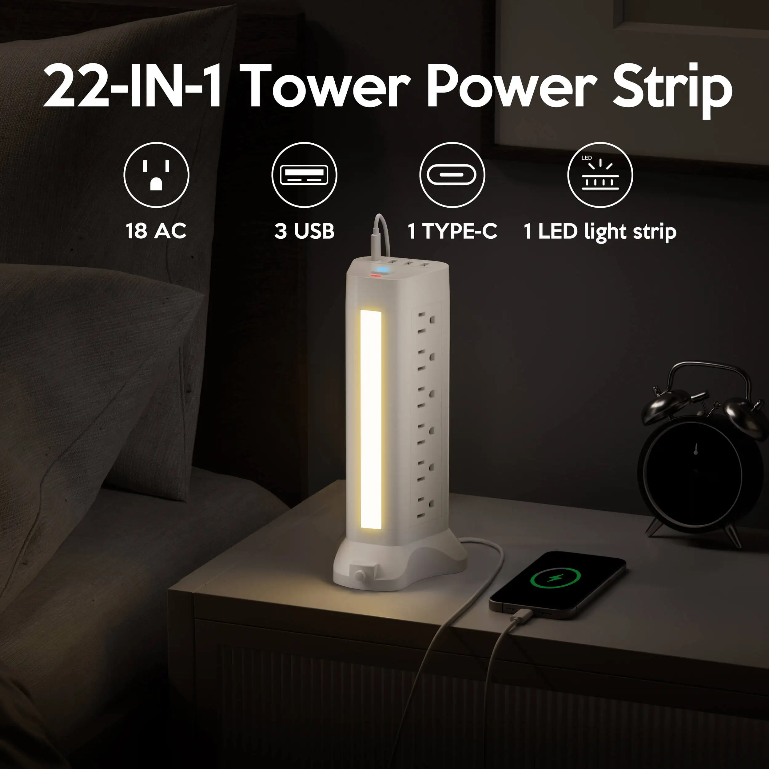 22-in-1 Power Tower with USB-C & Tri-Color Lamp | Surge Protected