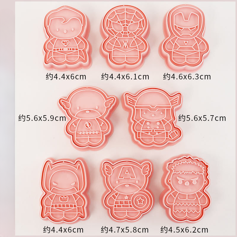 8pcs/set Cookie Cutter Q Version Spidermans Hulk Ironmans Captain America DIY 3D Cartoon Biscuit Molds Baking Tools
