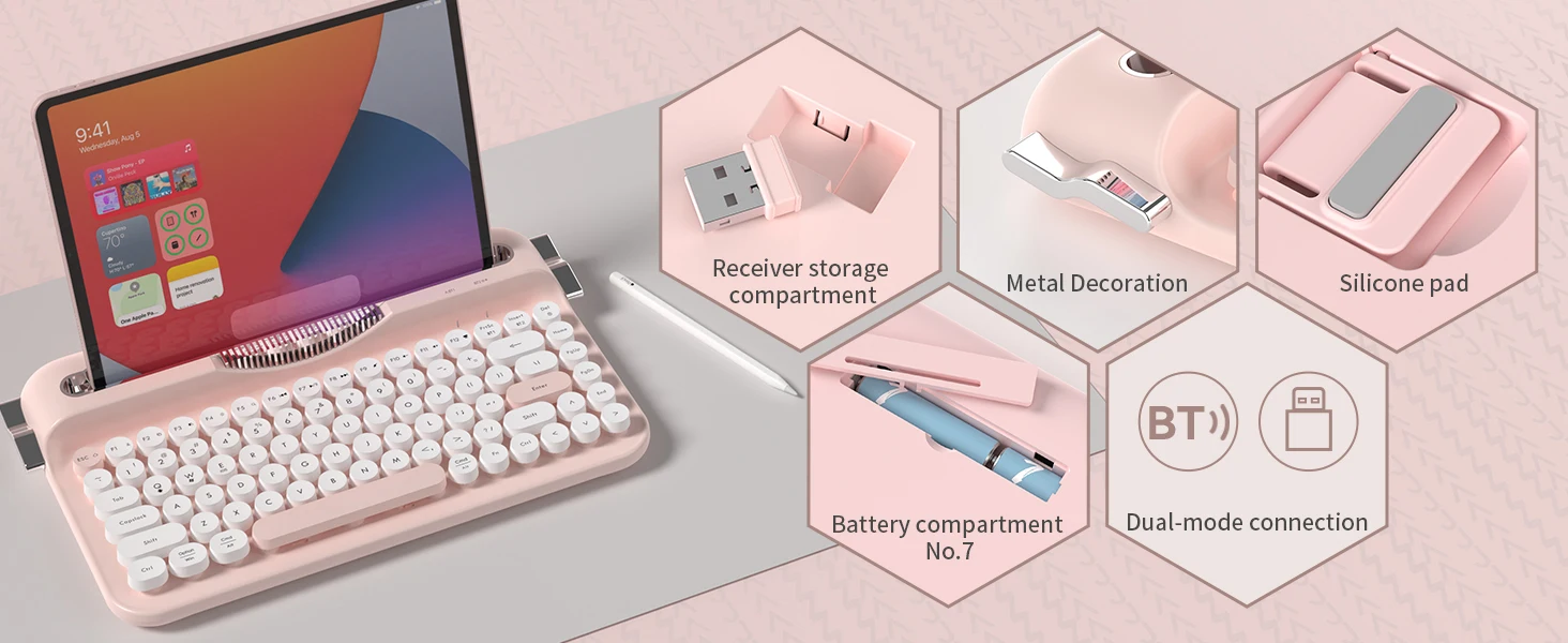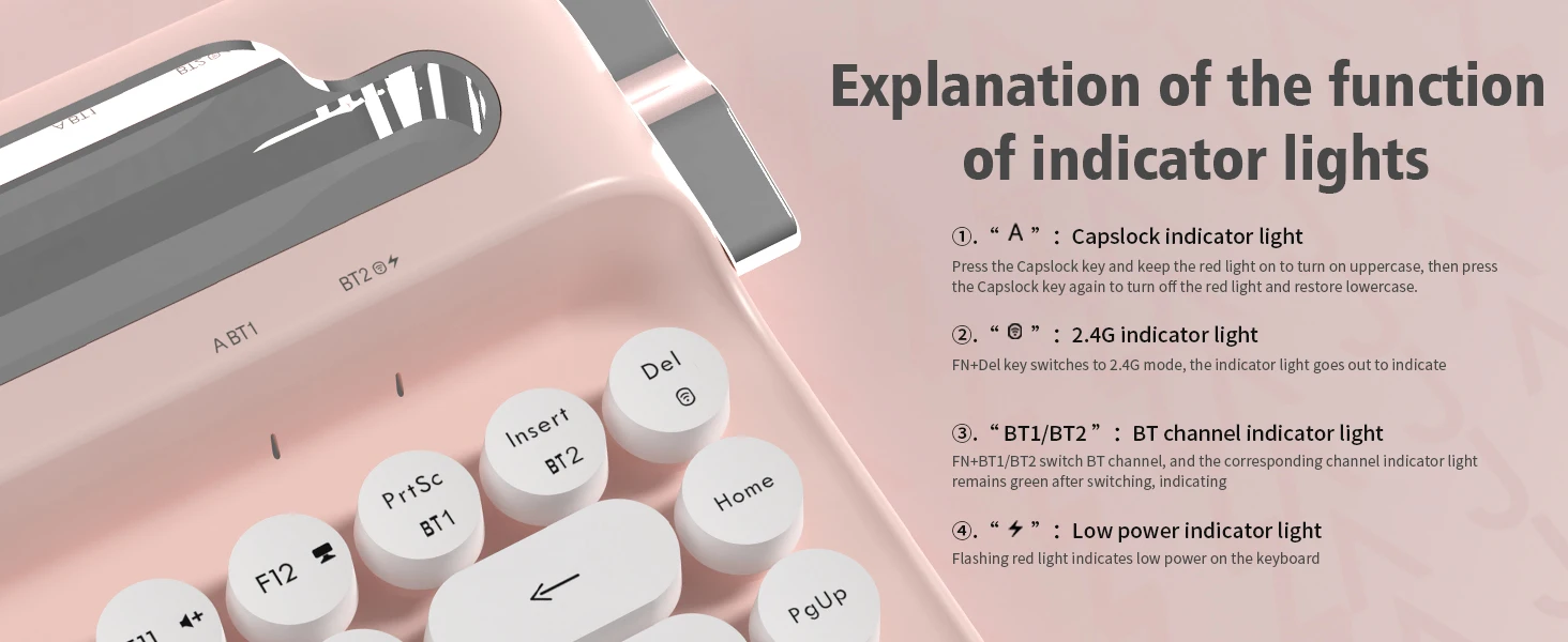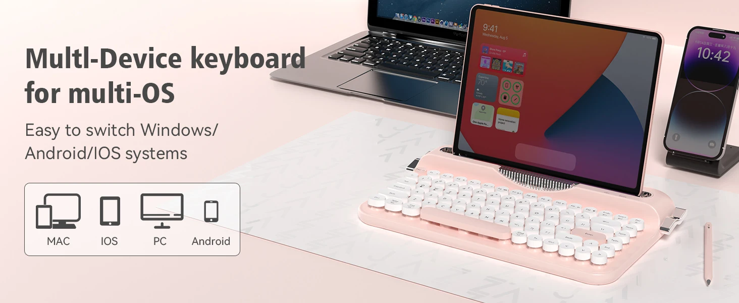 Support system: Suitable for Windows 8.0 and above, MacOS 10.10 and above in BT mode, and WinXP in Android 2.4G mode, Vista, Win7/8/10
