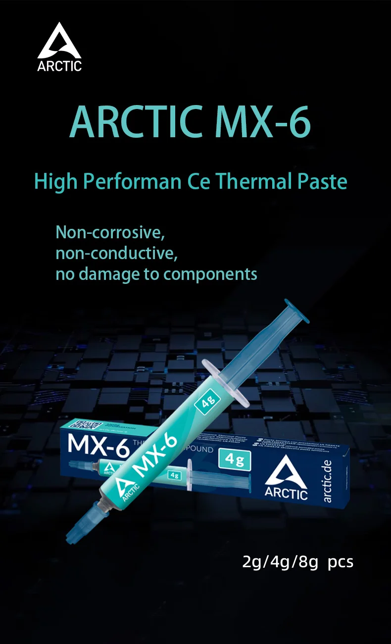 With its new composition, MX-6 is the suitable thermal compound for many application scenarios. Excellent non-drying and non-bleeding properties ensure consistent long-term performance. Its viscosity prevents leakage due to the pump-out effect. It's also suitable for direct-die cooling scenarios which occur, for example, with graphics cards or console processor GPUs.