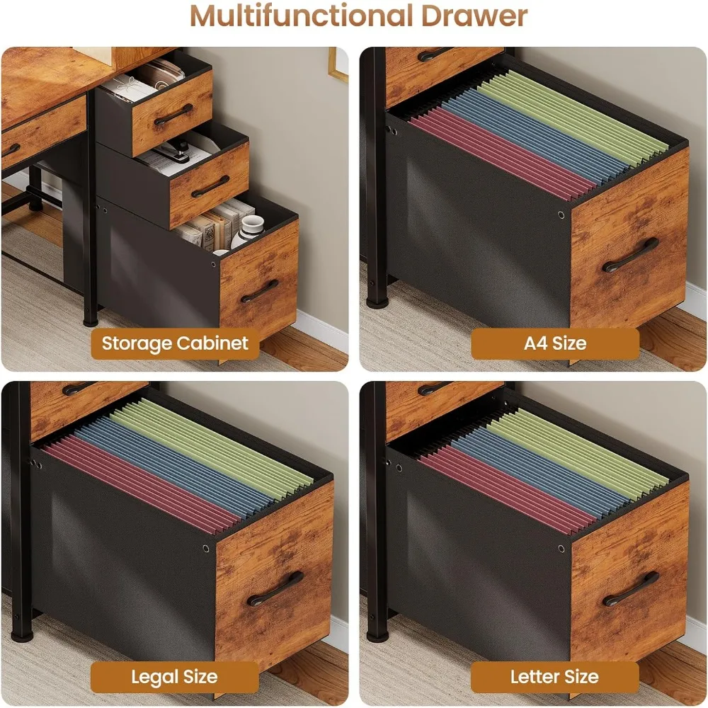 - 【Smart Storage Revolution】4 heavy-duty non-woven drawers + 1 file cabinet (holds Letter/A4/Legal size docs) conquer desk chaos. Store daily items, books, files or game figure, collect trophies, and souvenirs in the 3-tier vertical bookshelf, stash snacks/stationery/accessories in the hanging storage bag.