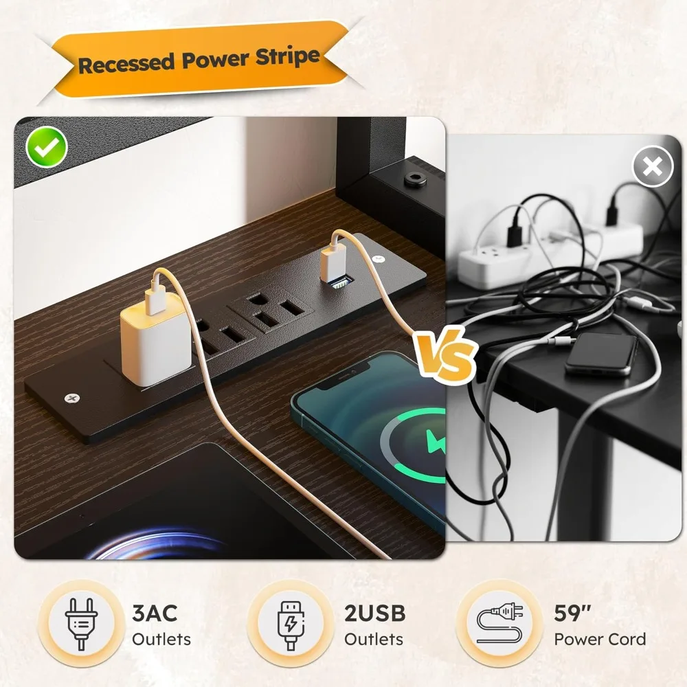 - 【Integrated Power & Charging Station】This home office desks features 3 standard sockets and 2 ports—supporting up to 5 devices simultaneously for phones, gaming gear, and more. Charge seamlessly during work, study, or gaming to keep your essentials powered and your desk clutter-free. Streamline your workflow with built-in convenience!