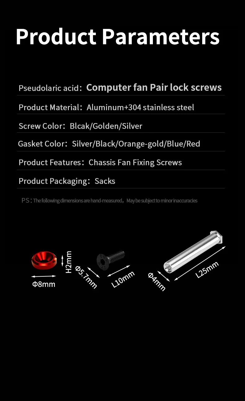 Computer PC Case Cooling Fan Mount Screws Multiple Colour Mutually Locked Screw Fixer Bolt Set For Thickness of 25/30mm Fan