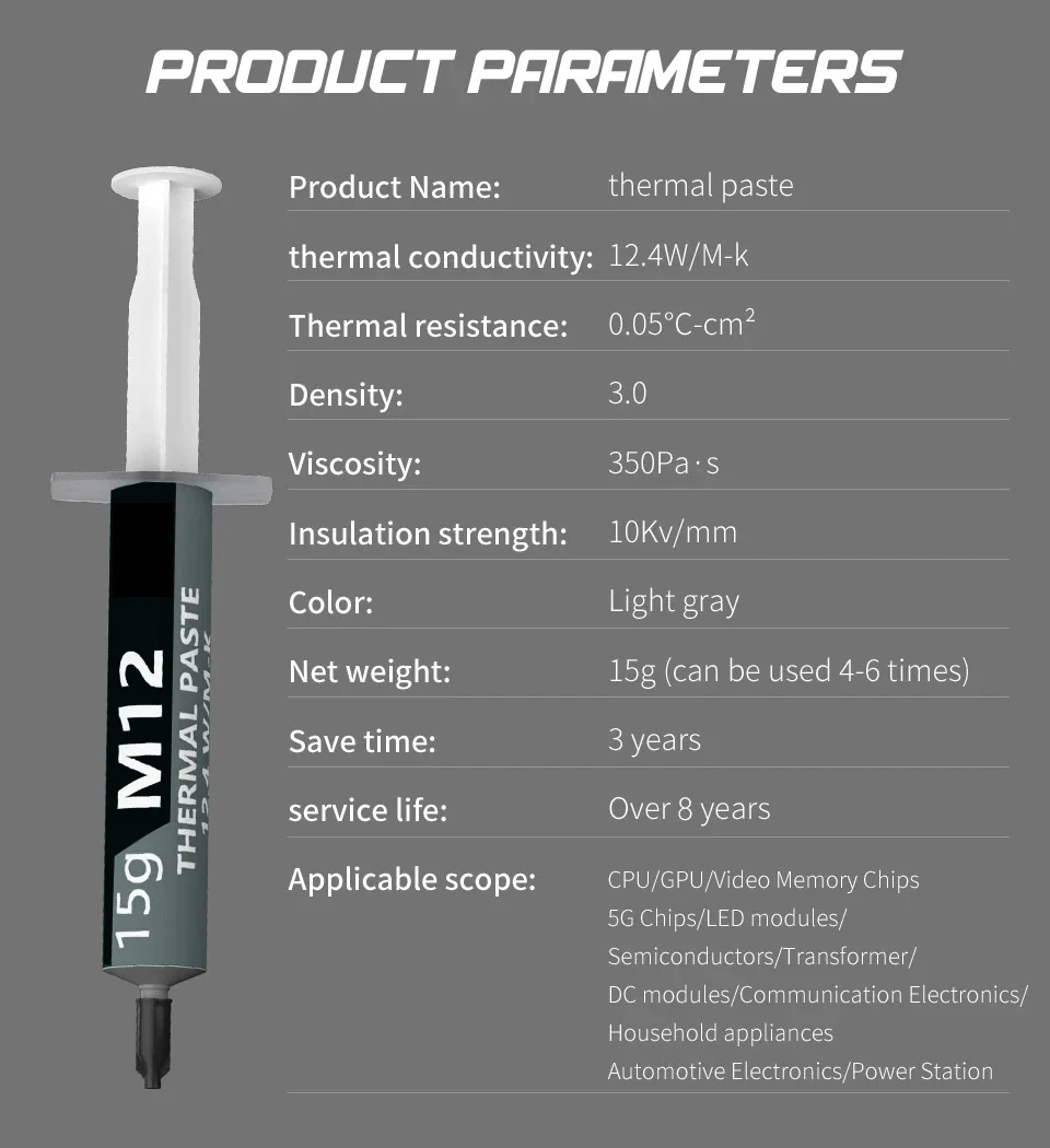 COOLCIRC Thermal Paste Performance Thermal Conductive Grease Paste 12.4 W/MK 1/4/8/15/30g For Game PC PS5 CPU GPU Cooling