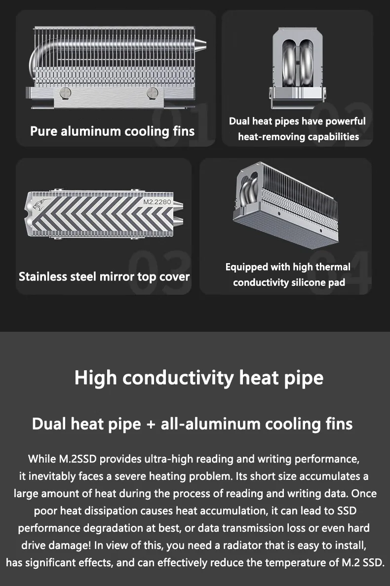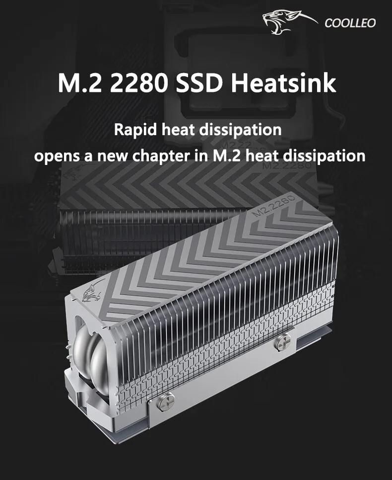 COOLLEO M.2 2280 NVMe SSD Heat Sink 2 heat pipes SSD Cooler With 14.8W/mk Thermal Pad