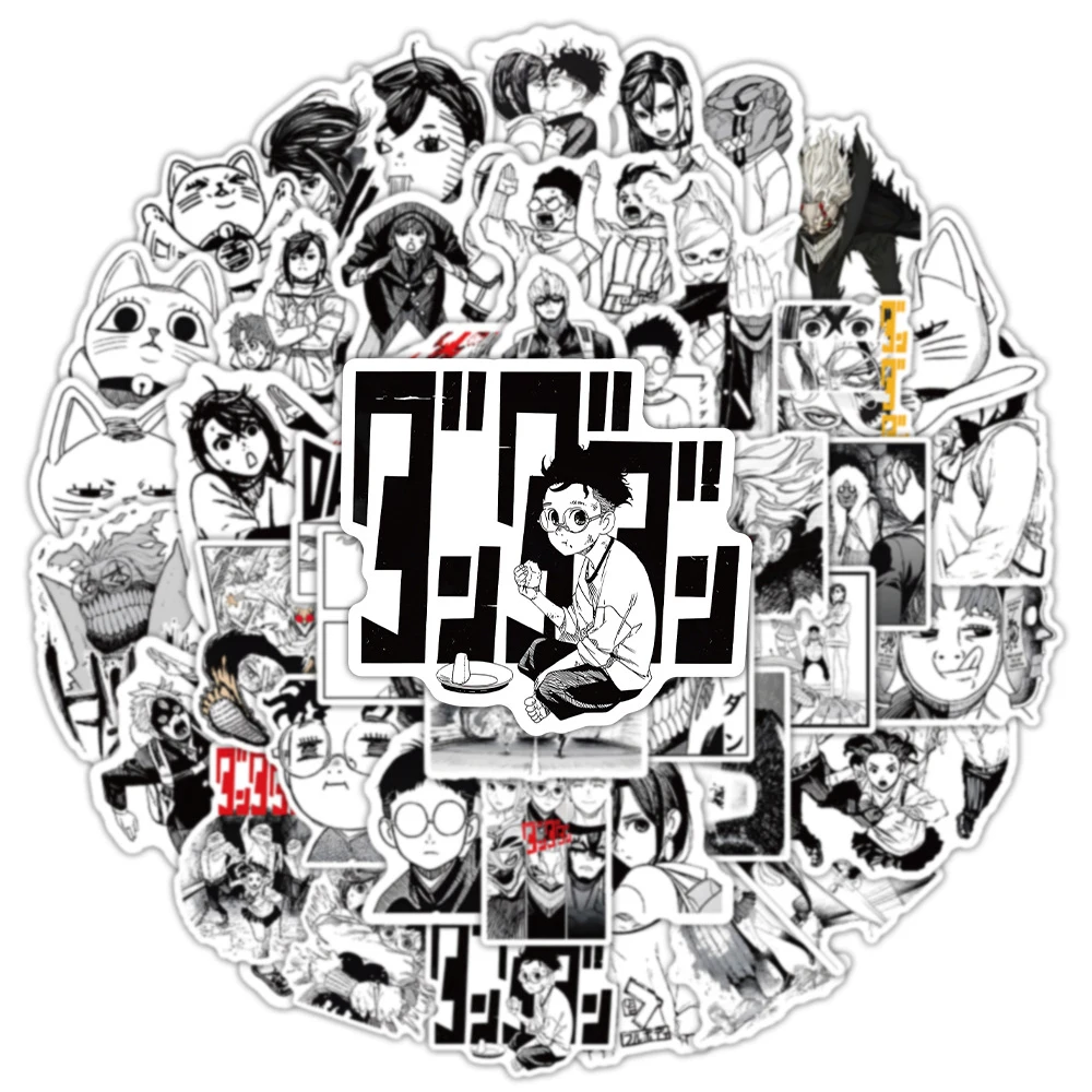 Personalize your belongings with these black-and-white Dandadan manga stickers. Featuring 10/30/50pcs of waterproof decals, they’re perfect for laptops, luggage, skateboards, cars, phones, and more.
