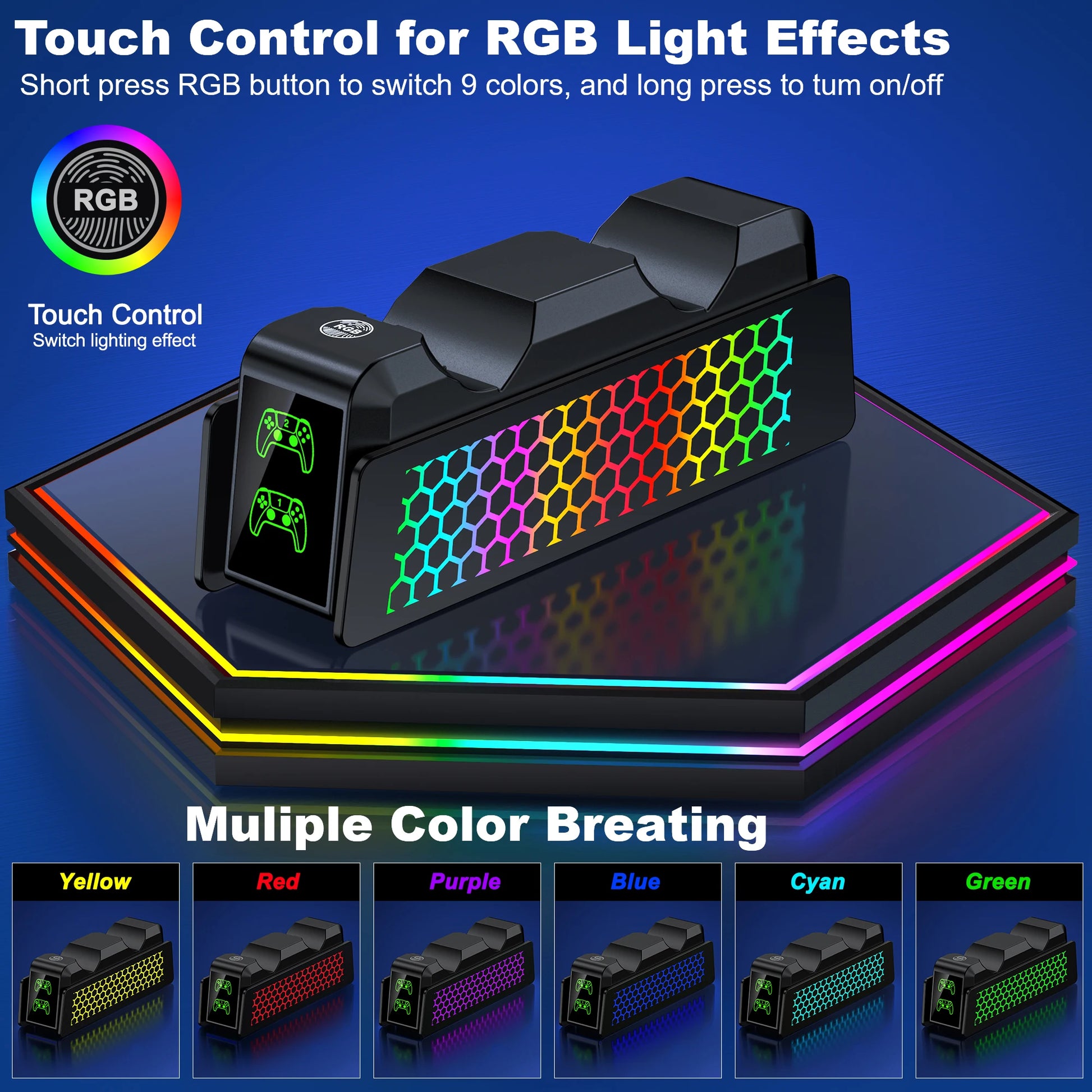 1.Keep your gaming sessions uninterrupted with our dualsense Charging Station. Designed specifically for PlayStation 5 DualSense wireless game controller, this charging dock provides a convenient and organized way to power up your controllers.
