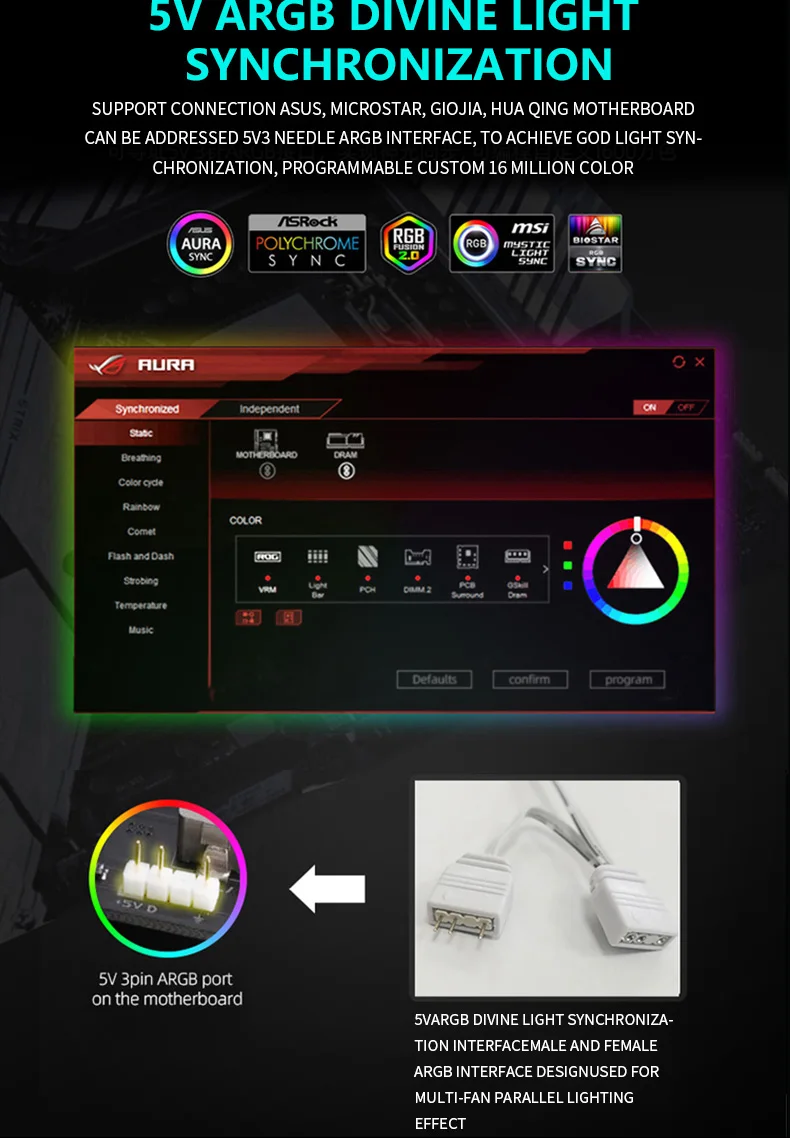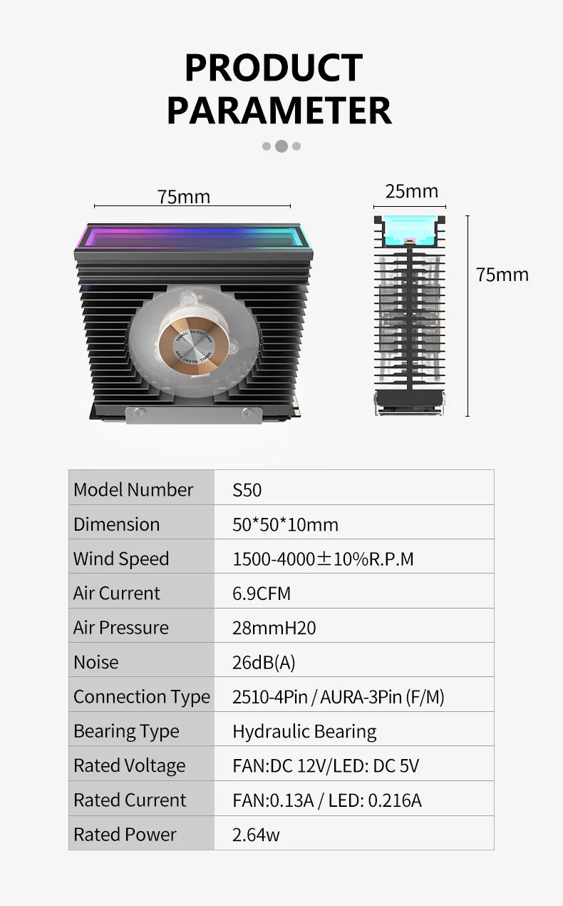 Rated Voltage:FAN: DC 12V/LED: DC 5V