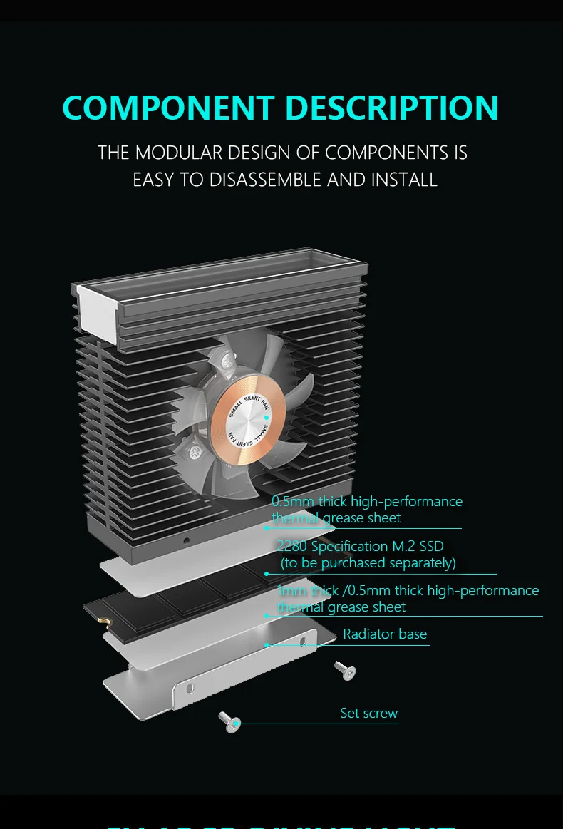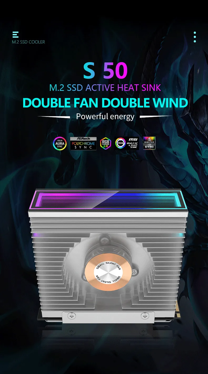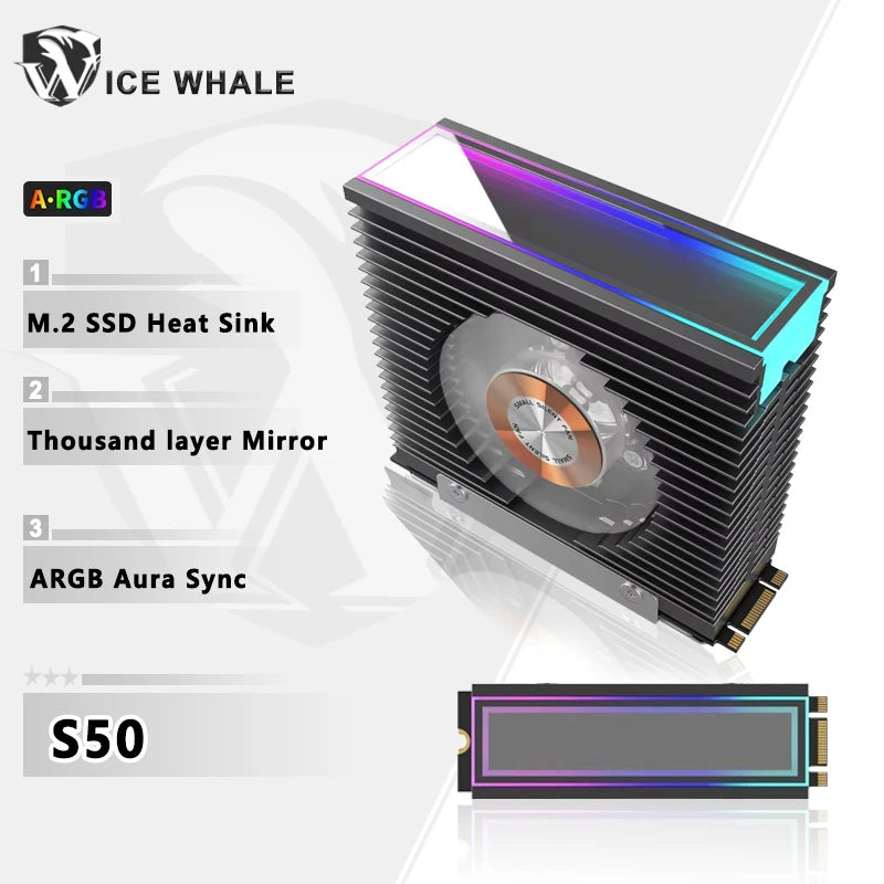 ICE Whale S50 M.2 SSD Heat Sink Dual Fan Thousand Layer Mirror ARGB Aura Sync M.2 2280 NVME Solid State Cooler All Aluminum