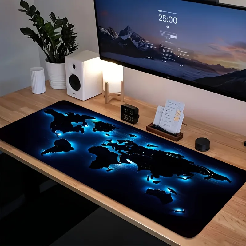 Large Blue Glow in The Dark World Map Mouse Pad Rubber Desk Mat Table Pad Accessories Decoration Mouse Mat 900x400 Office Things