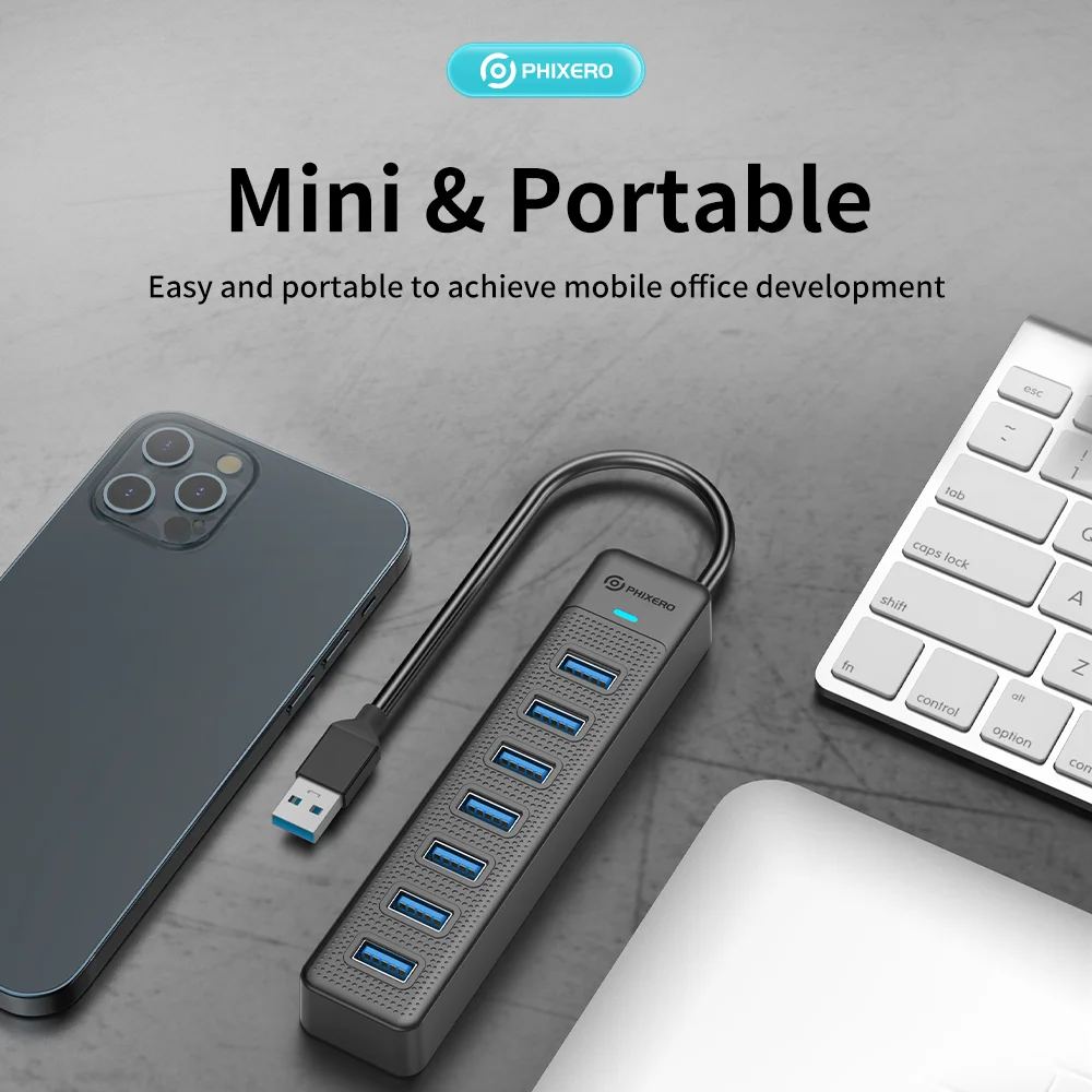 PHIXERO 7 in 1 USB C HUB 3.0 Type C 7 Port Multi Splitter Adapter OTG USB Power Adapter for Macbook Pro 13 Air Mi Pro PC Laptop