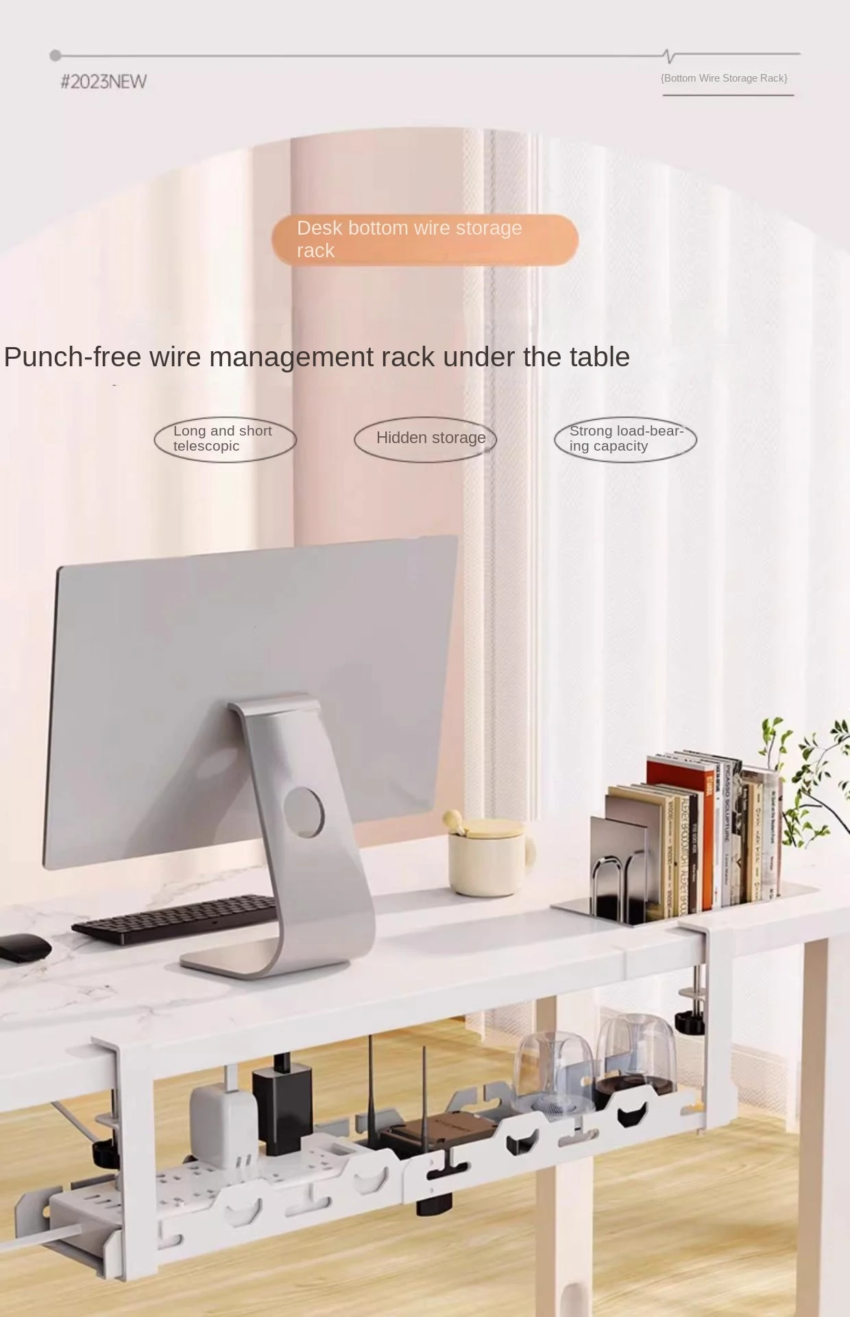 Telescopic Under Table Storage Rack Metal Cable Management Tray Home Office Desk Wire Organizer No Punching Storage Accessories