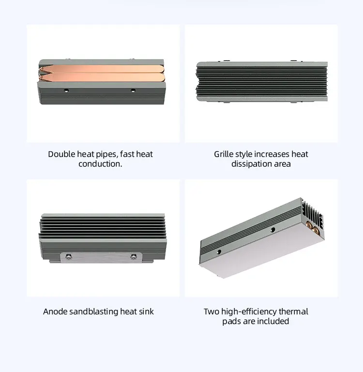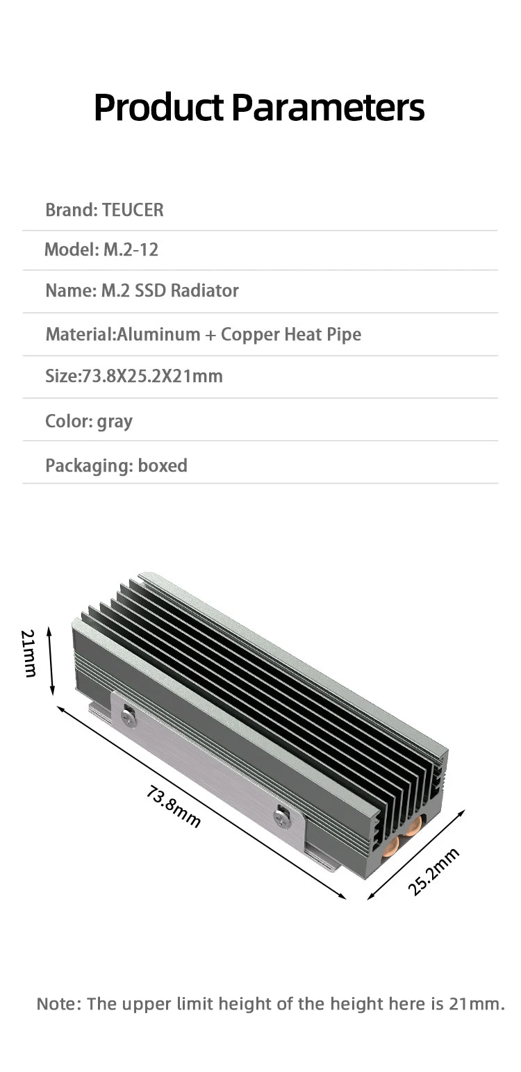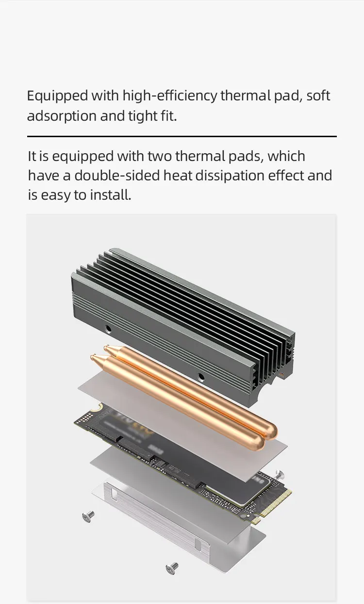 TEUCER M.2 NVMe 2280 SSD Heatsink Dual Copper Tube High Efficiency Radiator with Double-sided SSD Thermal Pad