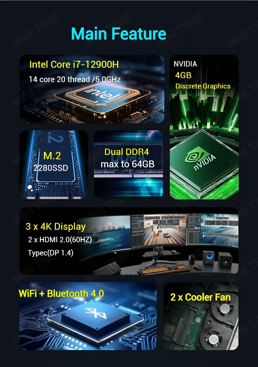 Yohirs Powerful Gaming Mini PC I9 12900H I7 12700H NVIDIA GTX1060 4G Thunderbolt4 Micro Desktop Computer Windows11 NUC 5G WIFI