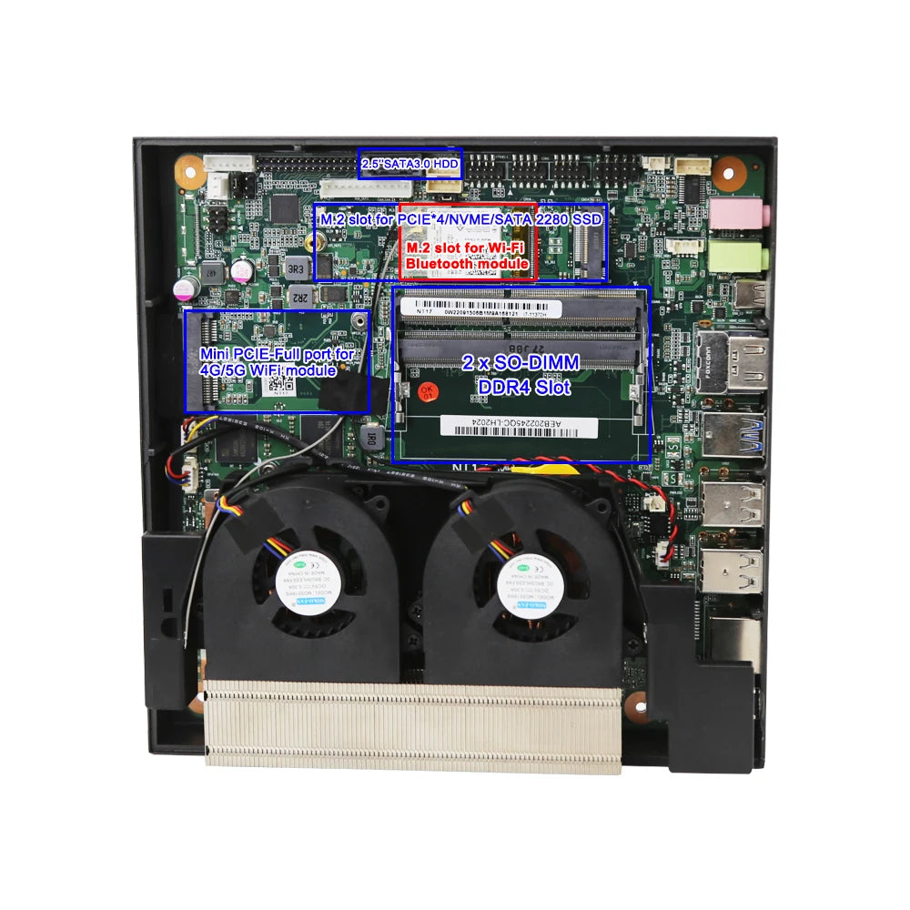 - 2xSO-DIMM DDR4 ram slots, support max 64GB 2400/2666/3200MHz.